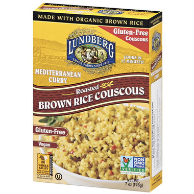 Food & beverages rice & grains rice brown rice. The rice is gently crushed into tiny granules and then fire roasted to add that extra nutty flavor. Lundberg family farms organic roasted brown rice couscous, savory herb 193g nogmo. Type of rice or grain: I have used lundberg's brown rice couscous before and am very happy with the product.